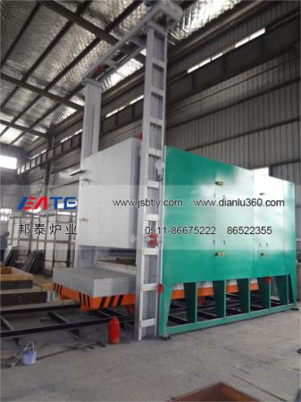 全纖維臺車爐由爐體(包括爐襯)、爐門、爐車、爐門起吊機構、爐車行走機構、加熱元件、溫控系統(tǒng)、溫度記錄等部分組成。
