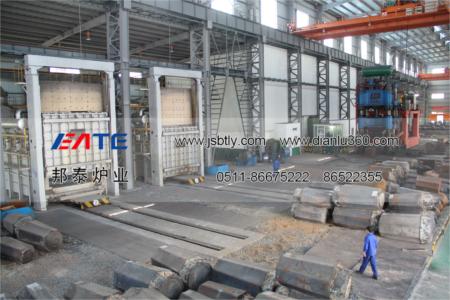 2.燃?xì)馀_(tái)車爐主要由爐體、爐襯、爐門、自行走臺(tái)車系統(tǒng)、高速燃燒系統(tǒng)、管路及其壓力自控系統(tǒng)、爐壓自控及排煙余熱回收系統(tǒng)、密封裝置、溫度控制及記錄系統(tǒng)、計(jì)算機(jī)系統(tǒng)等主要部分組成。設(shè)備以各式燃燒氣體為介質(zhì),通過(guò)的高速燒嘴燃燒加熱,溫度1250℃。