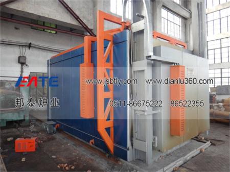 爐體開(kāi)出,爐門升降均為電動(dòng)控制,配有行程開(kāi)關(guān),可防止慣性撞擊爐體,并且連鎖控制,打開(kāi)爐門后,自動(dòng)切斷加熱元件電源,爐門上升到指定位置后才恢復(fù)臺(tái)車行走機(jī)構(gòu)電源。爐門關(guān)閉后,自動(dòng)切斷臺(tái)車行走機(jī)構(gòu)電源,同時(shí)恢復(fù)加熱元件電源。