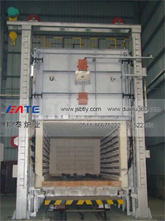 全纖維臺車爐由爐體(包括爐襯)、爐門、爐車、爐門起吊機構、爐車行走機構、加熱元件、溫控系統(tǒng)、溫度記錄等部分組成。